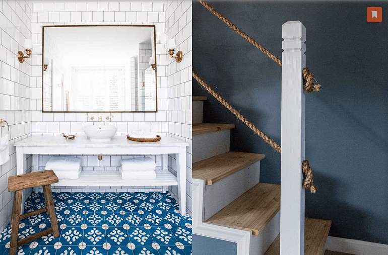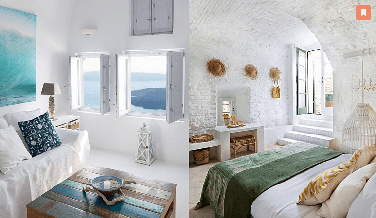 The most common colors in this space are white, blue, light blue, yellow and beige. Coral tones, green color and other natural shades characteristic of seaside landscapes will also be appropriate. In the Arabic and Spanish varieties of the style, rich turquoise is often found.