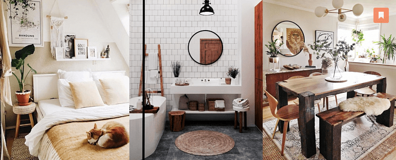 All boho faces welcome rattan furniture, jute rugs, hanging wicker pots, chests and souvenirs from countries you have visited (or would like to visit).