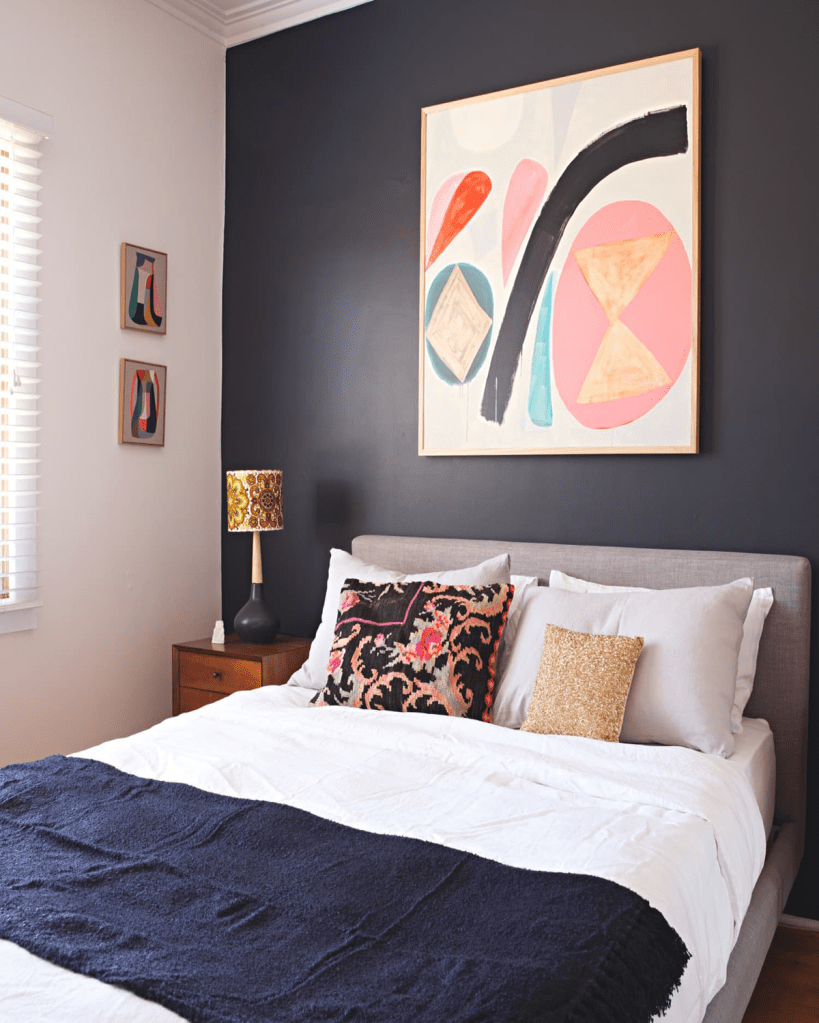 1. Hang Vibrant Artwork Bedroom